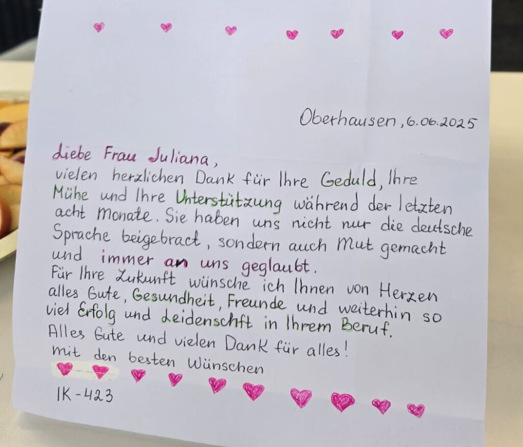 „Professionelle Betreuung und hilfreiche Tipps haben mir beim Deutschlernen sehr geholfen.“